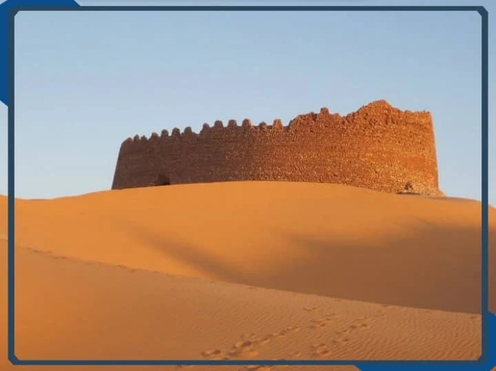 The fortress is built of stone and mud with double walls and has a circular architecture. It originally consisted of three floors, all of which have collapsed, leaving only evidence of their existence. The stairs leading to the upper floors are still visible. The palace features many rooms that are not connected to each other and lacks windows overlooking the outside. Entry to the palace is through a single door, and its walls are topped by a watchtower with a height of 2 meters. This fort is a testament to a bygone era of warfare,