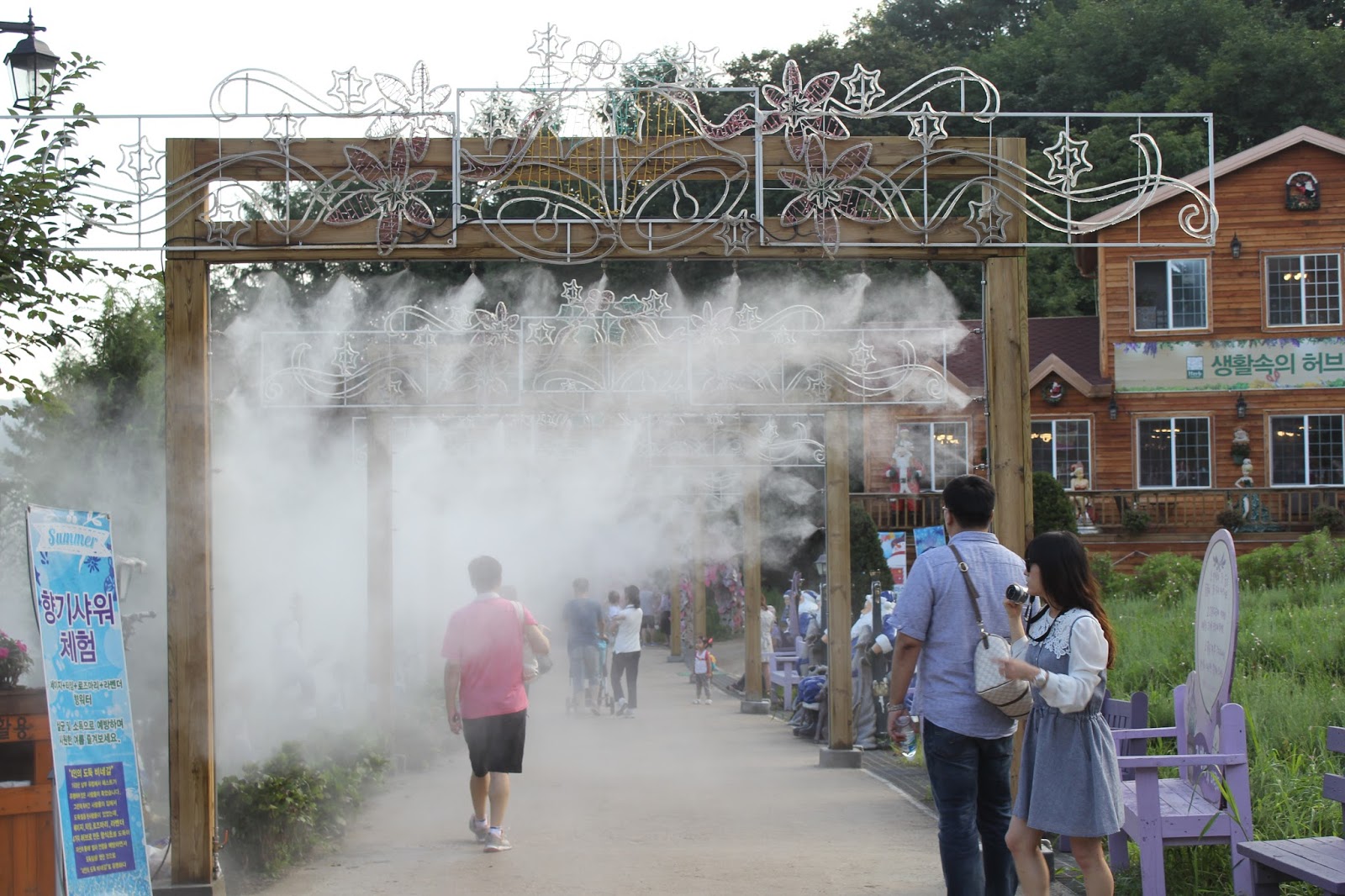 The Santa Claus village, situated at the back side of these herb greenhouses, provided me with another delightful experience. The sweet and cool atmosphere, accompanied by the fresh aroma of herbs, was particularly enjoyable during the hot summer days. The village hosted a cooling event featuring aromatic herbal showers along the path, continuing until the end of August. Visitors and Santa Clauses lined up on this path, immersing themselves fully in the foggy herbal vapor. It was a very pleasant and uniquely aromatic experience.