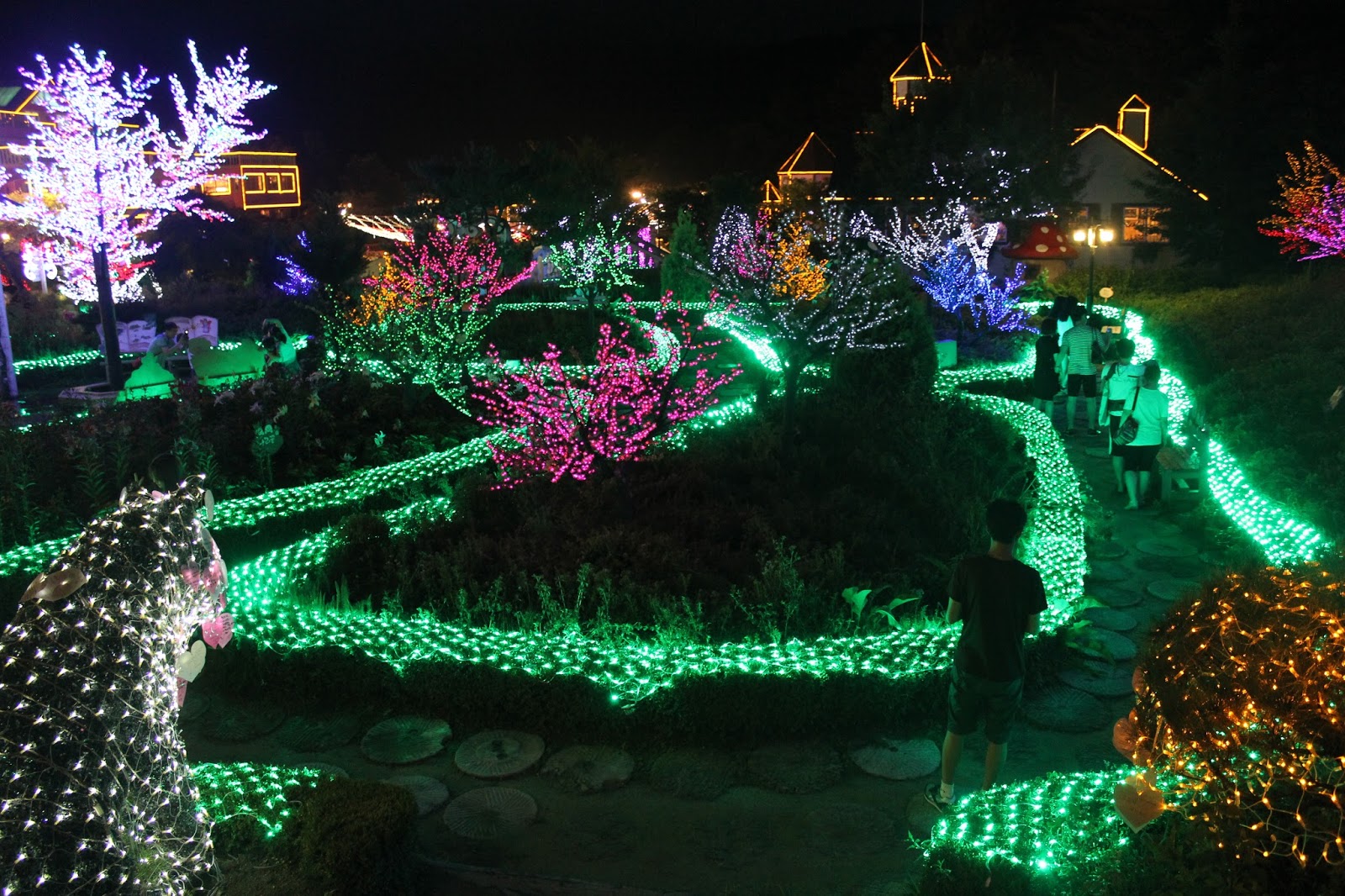 During the live show, I couldn’t help but notice that the two performers on stage had some difficulty with their singing ability. They struggled with hitting the high notes, and some portions of the notes were stretched longer than usual. I overheard the person next to me commenting humorously, “What makes them sing just like crying?” Whatever the critique, it didn’t dampen my romantic feeling at all. The night has a powerful ability to make everything look beautiful. This nightly light festival continues throughout the year, so there’s no need to wait to experience the beauty of the night at this enchanting place.